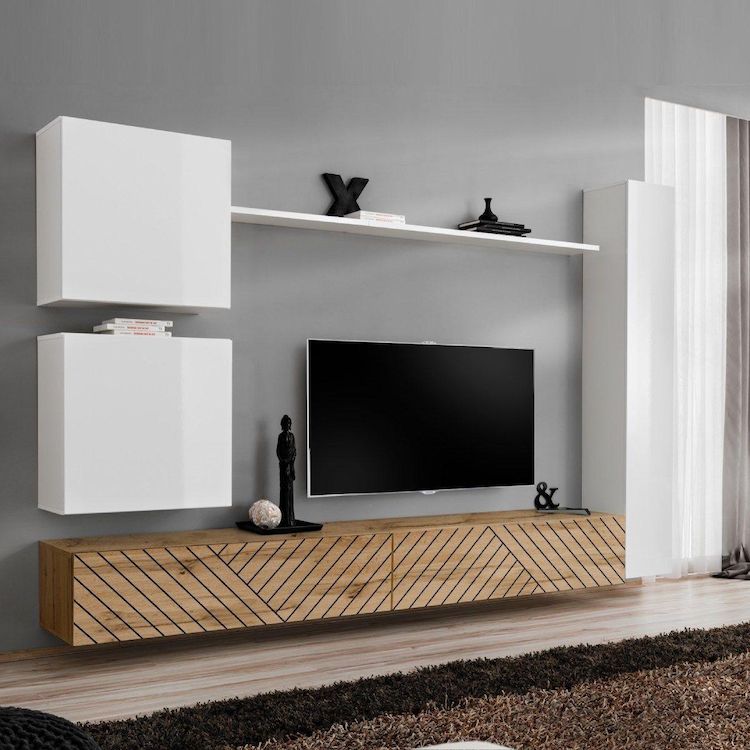 Ensemble Meuble TV Switch Lamel VIII 280cm Naturel & Blanc