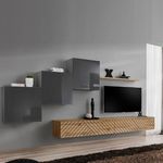Informations Techniques : Dimensions : L. 330 x l. 40 x H. 150 cm (selon positionnement souhaité) Meuble TV : L. 120 x l. 40 x H. 30 cm Bloc mural : L. 60 x l. 30 x H. 60 cm Etagère murale : L. 120 x l. 20 x H. 1,8 cm Matière : MDF Cet ensemble contient : 2 x Meuble TV 3 x Bloc mural 1 x É