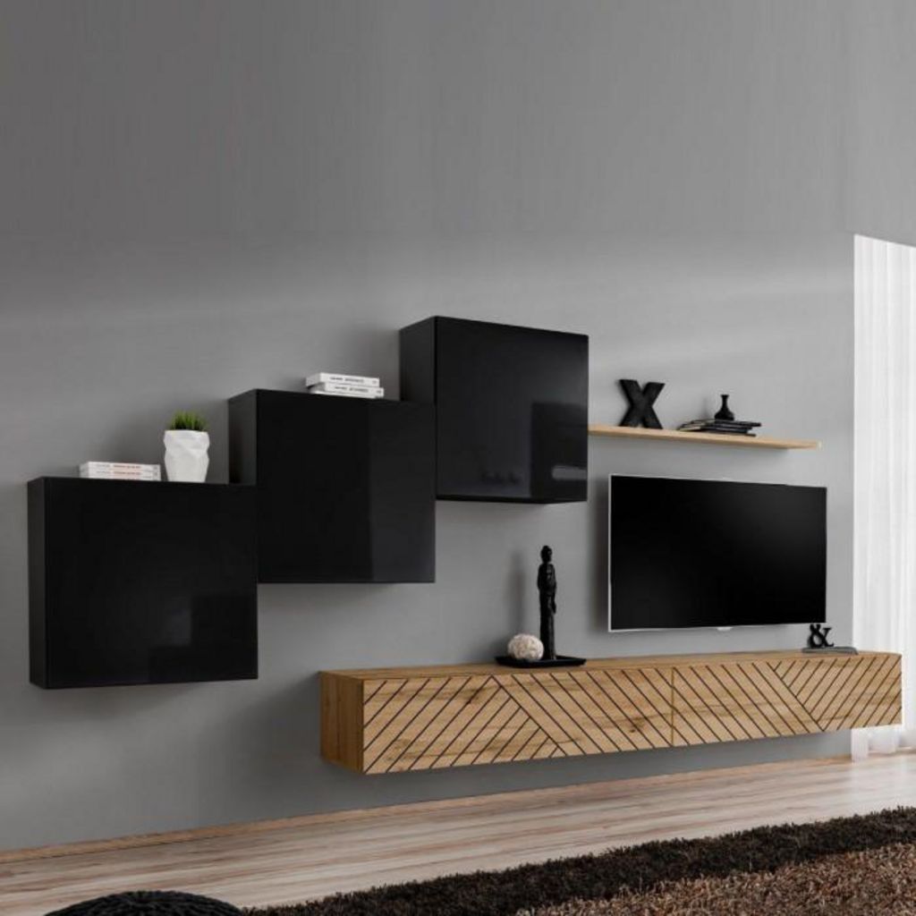 Ensemble Meuble TV Switch Lamel X 330cm Naturel & Noir