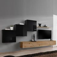 Informations Techniques : Dimensions : L. 330 x l. 40 x H. 150 cm (selon positionnement souhaité) Meuble TV : L. 120 x l. 40 x H. 30 cm Bloc mural : L. 60 x l. 30 x H. 60 cm Etagère murale : L. 120 x l. 20 x H. 1,8 cm Matière : MDF Cet ensemble contient : 2 x Meuble TV 3 x Bloc mural 1 x É