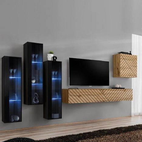 Ensemble Meuble TV Switch Lamel XIII 330cm Naturel & Noir