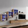 Informations Techniques : Dimensions : L. 330 x l. 40 x H. 150 cm (selon positionnement souhaité) Meuble TV : L. 120 x l. 40 x H. 30 cm Vitrine : L. 60 x l. 30 x H. 60 cm Étagère : L. 120 x l. 20 x H. 1,8 cm Matière : MDF Cet ensemble contient : 2 x Meuble TV 3 x Vitrine murale à LED 1 x Étagère Sp