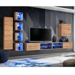 Informations Techniques : Dimensions : L. 320 x l. 40 x H. 150 cm (selon positionnement souhaité) Vitrine : L. 30 x l. 25 x H. 30 cm Bloc Mural Vertical : L. 30 x l. 30 x H. 120 cm Armoire : L. 60 x l. 30 x H. 60 cm Meuble TV : L. 120 x l. 40 x H. 30 cm Matière : MDF Spécificités : Cet ensemble cont
