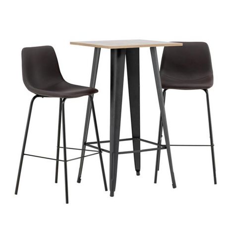 Ensemble Table de Bar & 2 Chaises Tempe & Alexis 105cm Noyer & Marron