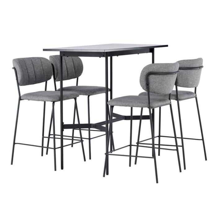 Ensemble Table de Bar & 4 Chaises Rax & Bell 120cm Noir & Gris