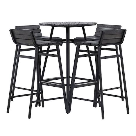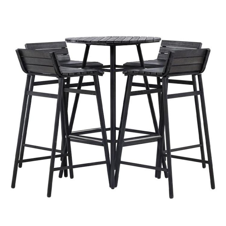 Ensemble Table de Bar de Jardin & 4 Tabourets Mexico 95cm Noir