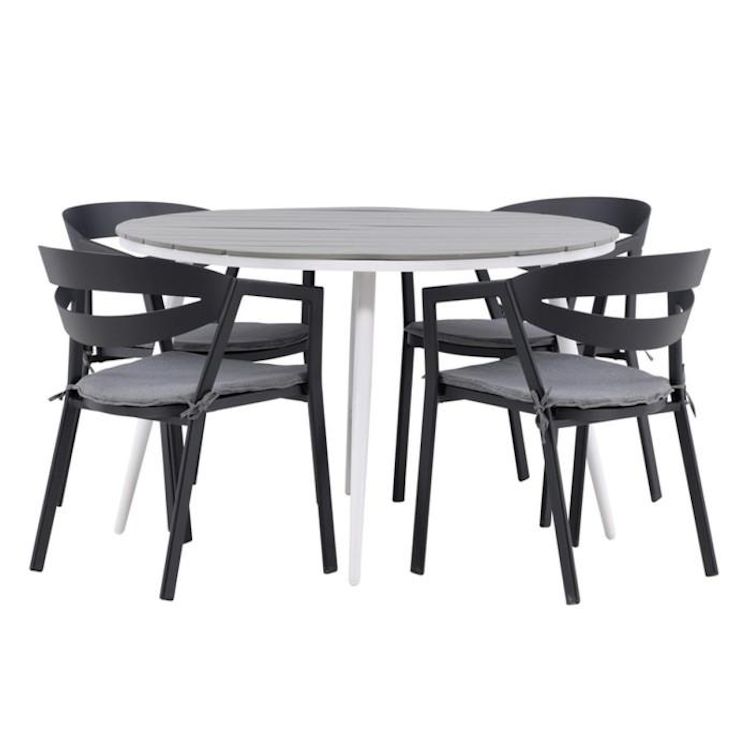 Ensemble Table de Jardin & 4 Chaises Break & Slit 120cm Gris & Noir