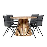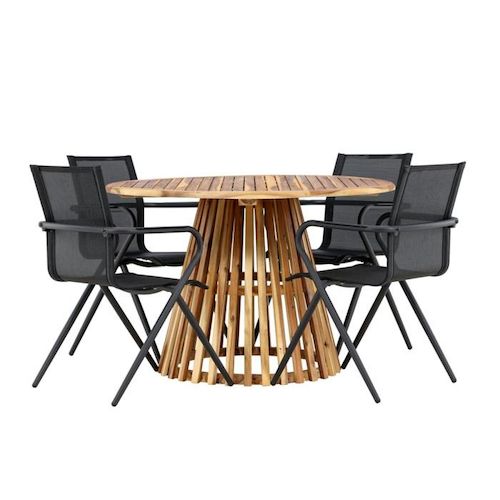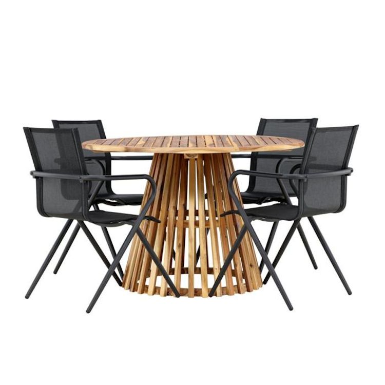 Ensemble Table de Jardin & 4 Chaises Lumpur & Alina 120cm Naturel & Noir