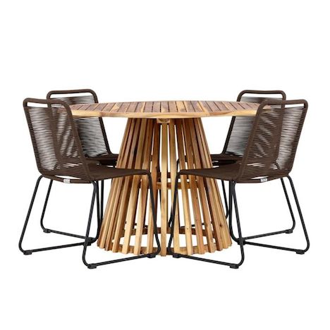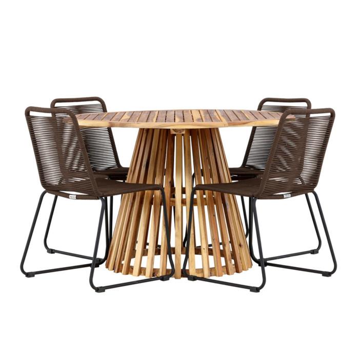Ensemble Table de Jardin & 4 Chaises Lumpur & Lindos 120cm Naturel & Marron