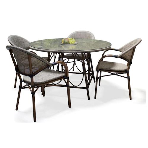 Informations Techniques : Dimensions : Table : D. 125 x H. 74 cm Fauteuil : L. 56 x l. 60 x H. 85 cm Assise : H. 46,5 cm Accoudoirs : H. 65 cm Matières : Aluminium & Textilène Spécificités : Pratique & Tendance Table d'extérieur ronde Avec 4 fauteuils empilables Nombre de colis : 3 Poids : 36 kg Co