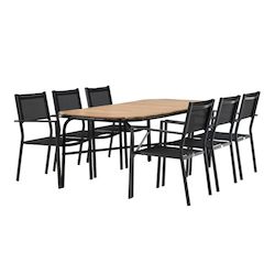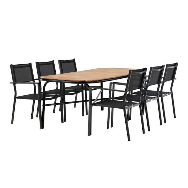 Ensemble Table de Jardin & 6 Chaises Holmbeck & Copacabana 200cm Naturel & Noir
