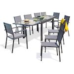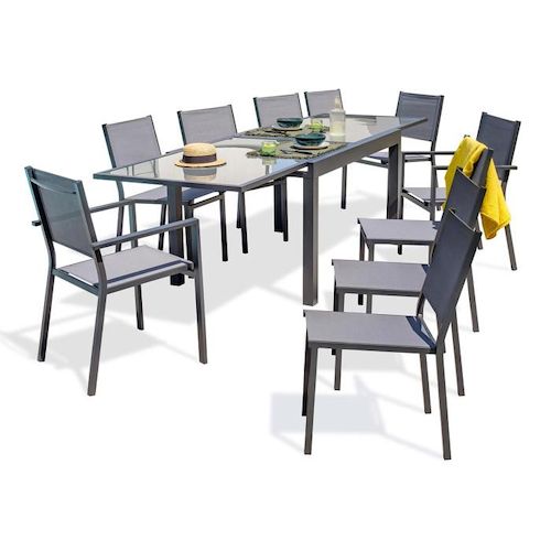 Ensemble Table de Jardin 8 Chaises & 2 Fauteuils Tolede 135-270cm Gris Anthracite