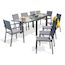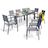 Informations Techniques : Dimensions : L. 135-270 x l. 90 x H. 75 cm Plateau : H. 0,5 cm Chaise : L. 48 x l. 56 x H. 87 cm Fauteuil : L. 56 x l. 56 x H. 87 cm Assise : H. 45 cm Accoudoirs : H. 64 cm Matières : Aluminium, Verre & Textilène Spécificités : Fonctionnel & Moderne Ensemble table à manger