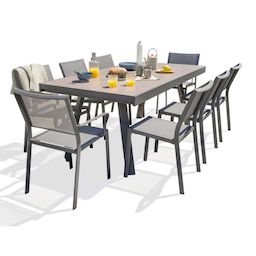 Ensemble Table de Jardin en Céramique 6 Chaises & 2 Fauteuils Stockholm 200-300cm Gris Anthracite