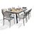 Informations Techniques : Dimensions : Table : L. 200-300 x l. 96 x H. 76 cm Chaise : L. 48 x l. 59 x H. 84 cm Fauteuil : L. 56 x l. 59 x H. 84 cm Assise : L. 42 x l. 43 x H. 46 cm Dossier : l. 47,5 x H. 34 cm Matières : Aluminium, Céramique & Textilène Spécificités : Fonctionnel & Moderne Ensemble