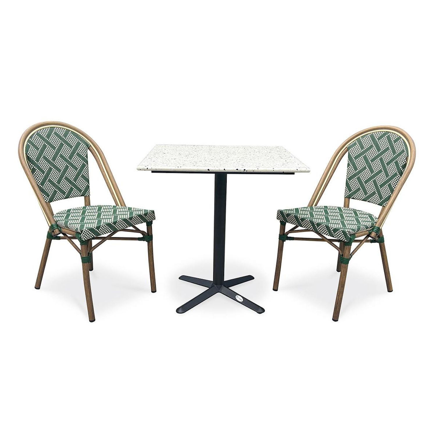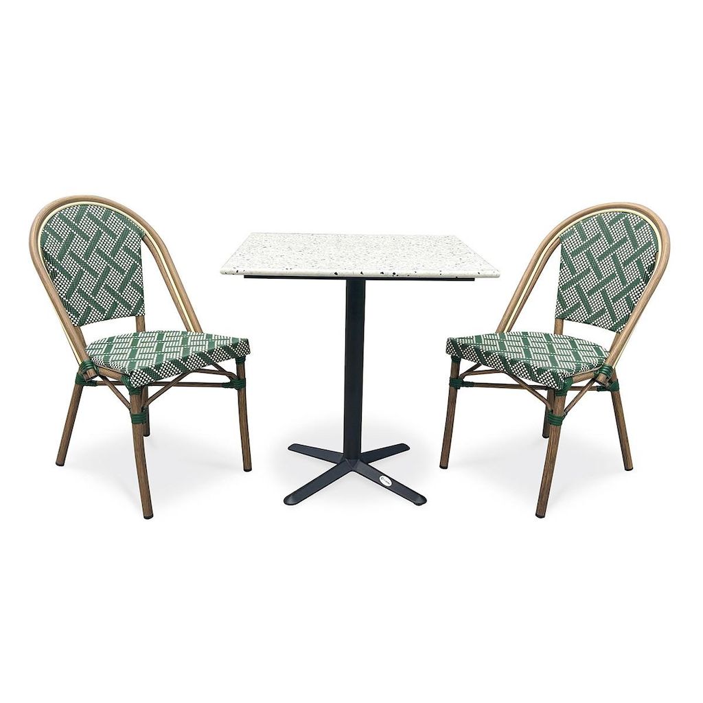 Ensemble Table de Jardin en Terrazzo & 2 Chaises Bistro 70cm Vert