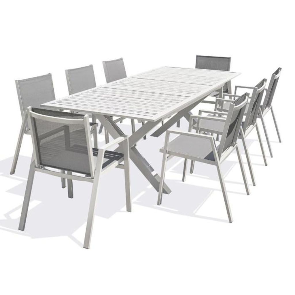 Ensemble Table de Jardin Extensible & 8 Fauteuils Floride 180-240cm Blanc
