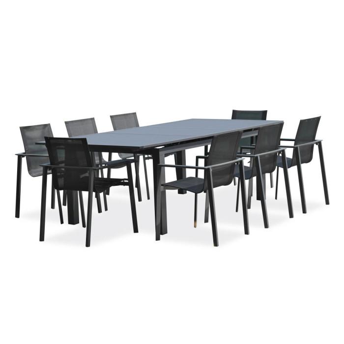 Ensemble Table de Jardin Extensible & 8 Fauteuils Miami 180-240cm Gris Anthracite