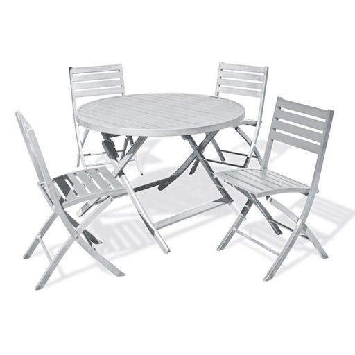 Ensemble Table de Jardin Pliante & 4 Chaises Marius 110cm Gris