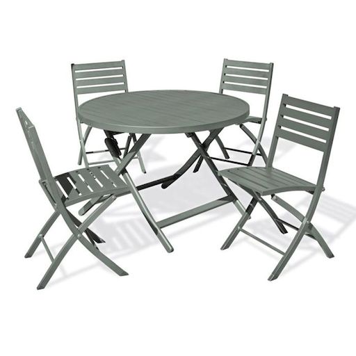 Ensemble Table de Jardin Pliante & 4 Chaises Marius 110cm Kaki