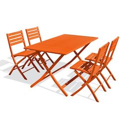 Ensemble Table de Jardin Pliante & 4 Chaises Marius 140cm Orange