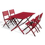Ensemble Table de Jardin Pliante & 4 Chaises Marius 140cm Rouge Carmin