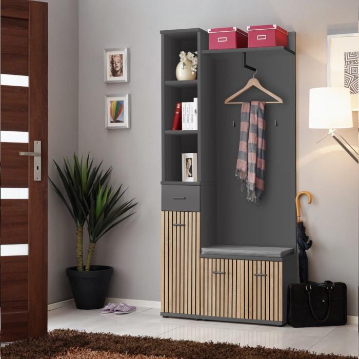 Ensemble Vestiaire 4P avec Coussin Marco 203cm Naturel & Gris