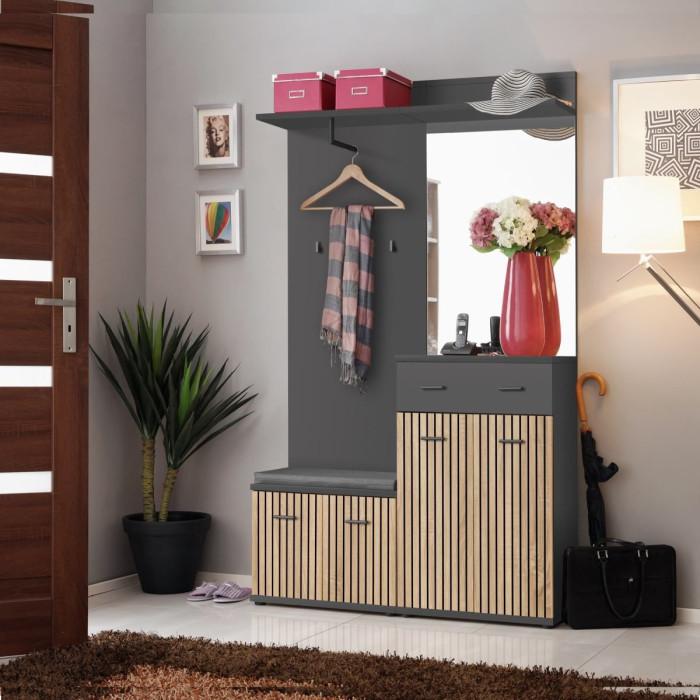 Ensemble Vestiaire 4P Miroir Marco 203cm Naturel & Gris