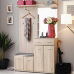 Informations Techniques : Dimensions : L. 120 x l. 32 x H. 203 cm Aménagement Dressing : L. 60 x P. 26 x H. 157,1 cm Meuble de Rangement : L. 60 x P. 32 x H. 46 cm Meuble à Chaussures : L. 60 x P. 32 x H. 96 cm Partie avec Miroir Mural : L. 60 x P. 26 x H. 106,5 cm Coussin : L. 60 x l. 32 cm Matière