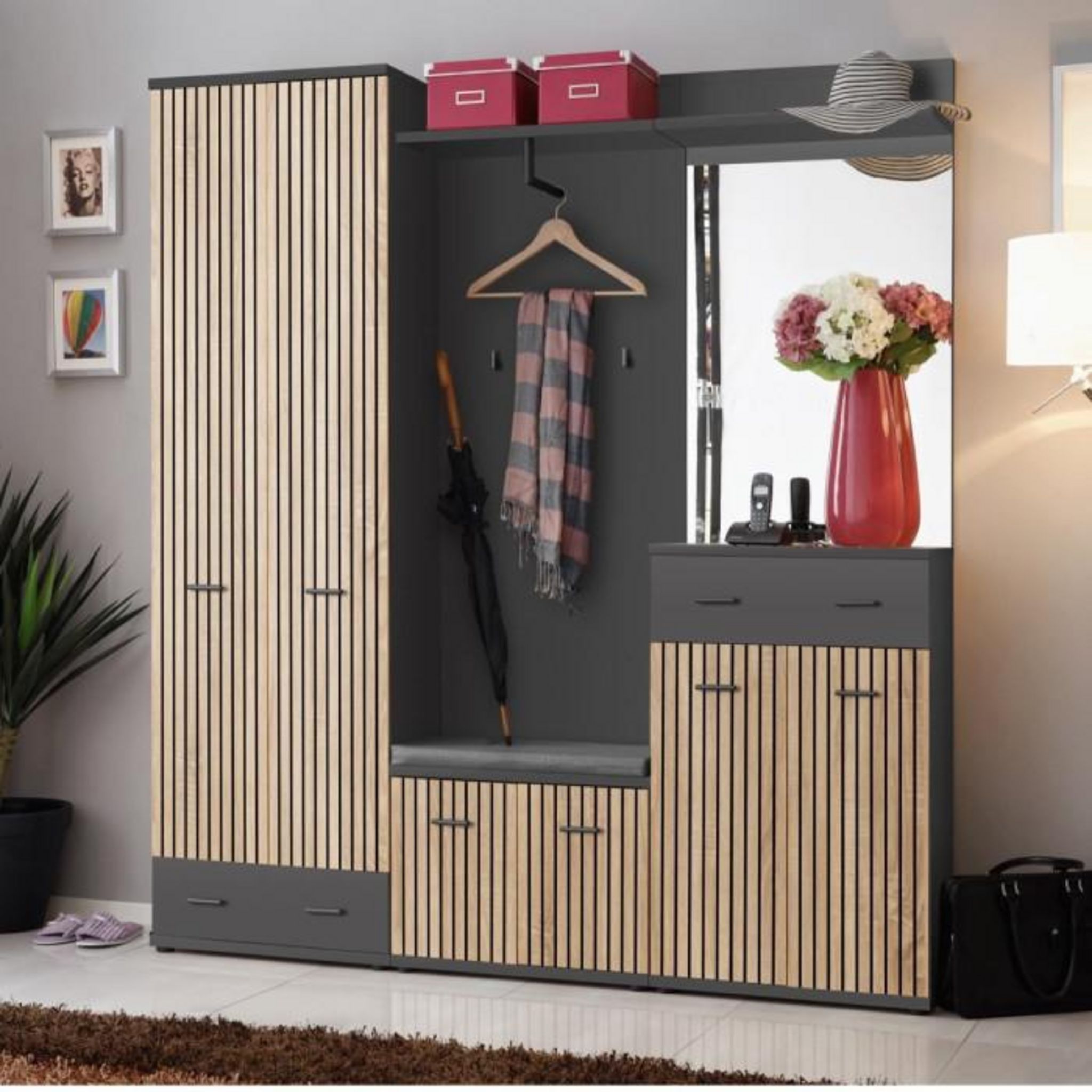Ensemble Vestiaire 5P avec Coussin Marco 203cm Naturel & Gris