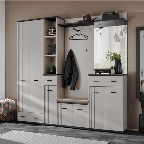 Informations Techniques : Dimensions : L. 210 x l. 32 x H. 203 cm Armoire : L. 60 x l. 32 x H. 203 cm Colonne de rangement : L. 30 x l. 32 x H. 203 cm Aménagement dressing : L. 60 x l. 28 x H. 157 cm Meuble de rangement avec coussin : L. 60 x l. 32 x H. 50 cm Miroir mural avec étagère : L. 60 x l. 2