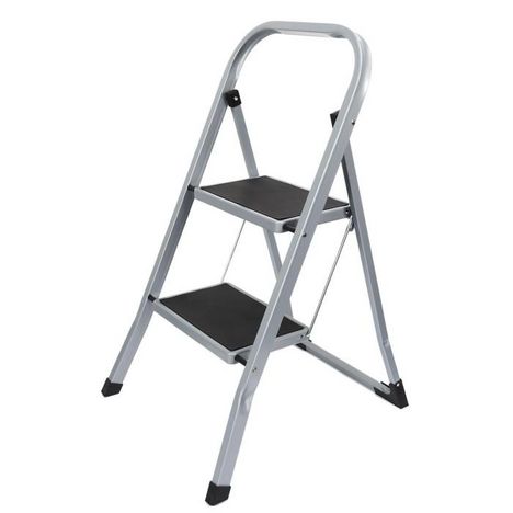 Informations Techniques : Dimensions : L. 55 x l. 46 x H. 81 cm Matières : Métal & Plastique Spécificités : Pratique & Utile Escabeau pliable Avec 2 marches Couleur : Gris & Noir