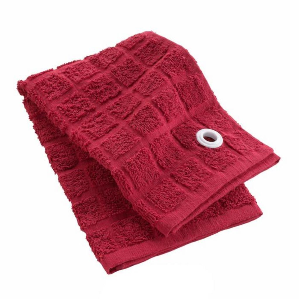 Informations Techniques : Dimensions : L. 50 x l. 50 cm Matière : 100% Coton Spécificités : Pratique & Utile Essuie-main carré Tissu éponge Label Oeko-Tex Conseil d'entretien : Lavage à 40° Pas de séchage en machine Repassage à 150° Poids : 0,1 kg Couleur : Rubis