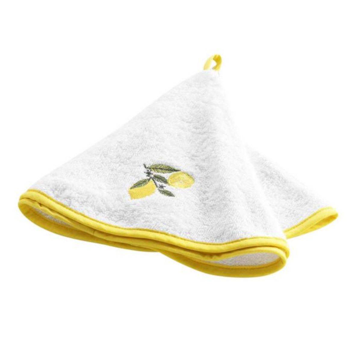 Informations Techniques : Dimensions : D. 60 cm Matière : 100% Coton Spécificités : Pratique & Utile Essuie-main Avec broderie Forme ronde Poids : 0,1 kg Couleur : Blanc