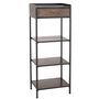 Informations Techniques : Dimensions : L. 54 x l. 38 x H. 140 cm Matière : Métal Spécificités : Pratique & Utile Étagère Design 1 Tiroir 3 Niveaux Capacité Portante : 15 kg A monter soi-même Poids : 14,4 kg Couleur : Noir & Naturel