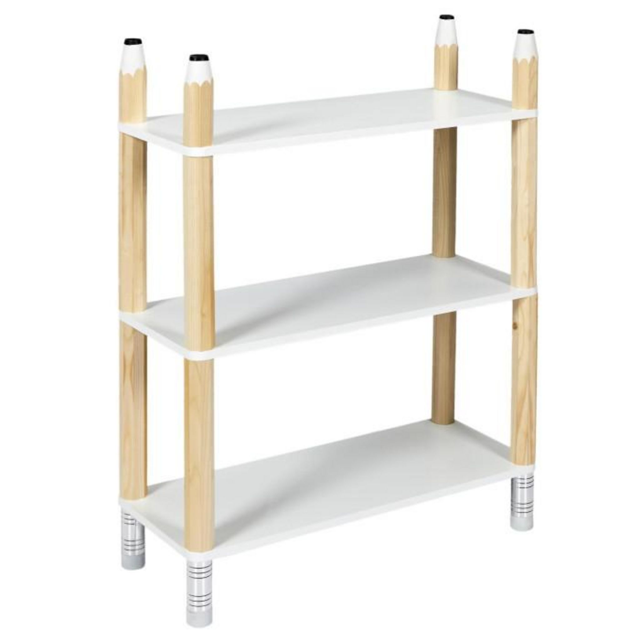 Étagère 3 Niveaux Enfant Crayon 77cm Blanc & Beige