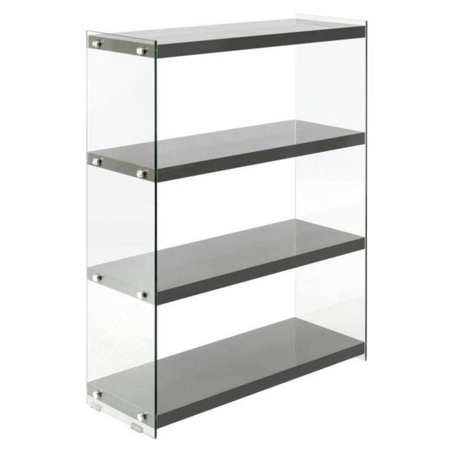 Informations Techniques : Dimensions : L. 83 x l. 29,5 x H. 113 cm Matières : MDF & Verre trempé Spécificités : Tendance & Moderne Étagère design Contient 4 Niveaux Parois Lattérales en Verre trempé Capacité de Charge Maximale : 10 kg par niveau (environ) A Monter Soi-Même Facile d'Entretien & d'Uti