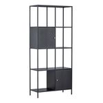 Informations Techniques : Dimensions : L. 80 x l. 35 x H. 180 cm Hauteur entre les étagères : H. 35 cm Matière : Acier Spécificités : Élégante & Pratique Étagère haute sur pied 4 niveaux et 2 portes Revêtement en poudre époxy Nombre de colis : 1 Poids max supporté : 40 kg Poids : 20 kg Couleur : Noi