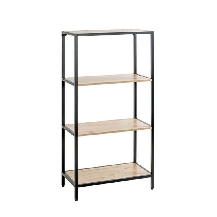 Étagère Bibliothèque 4 Niveaux Miranda 129cm Chêne & Noir