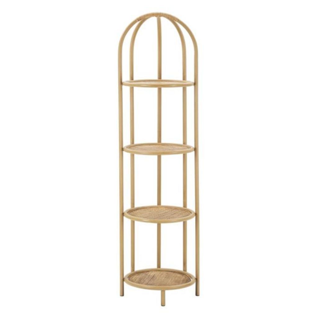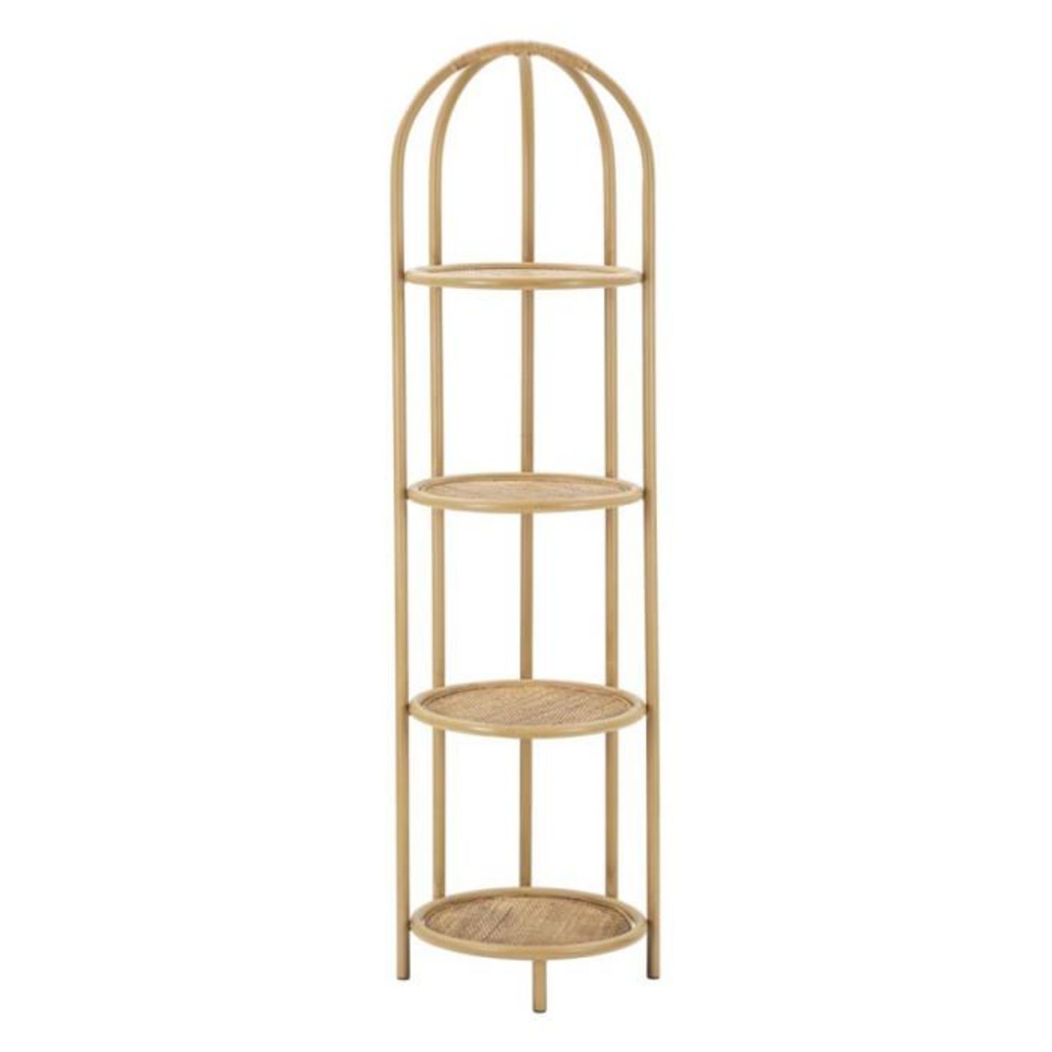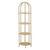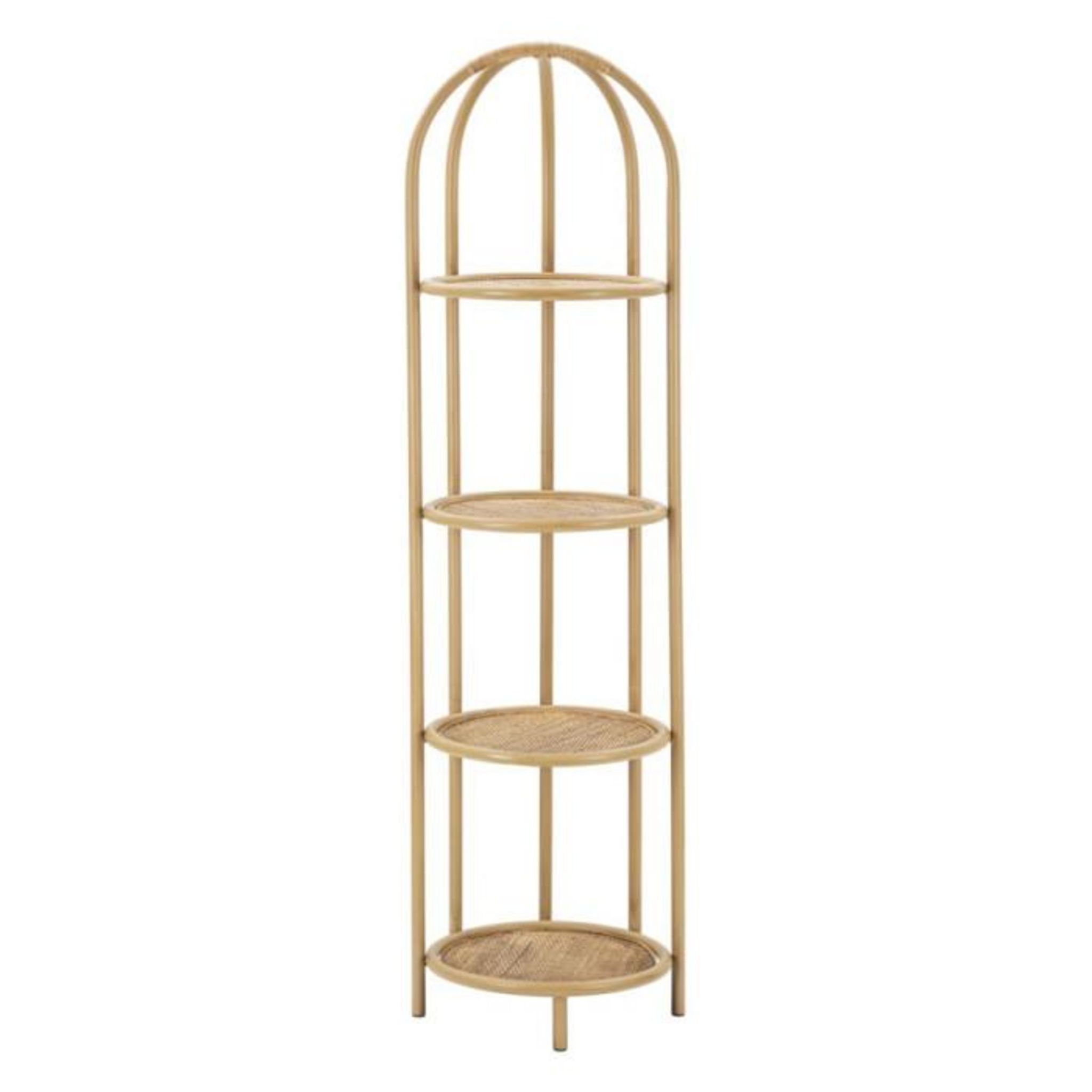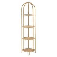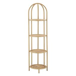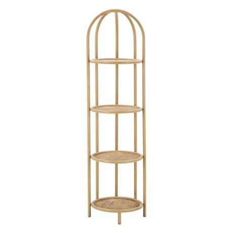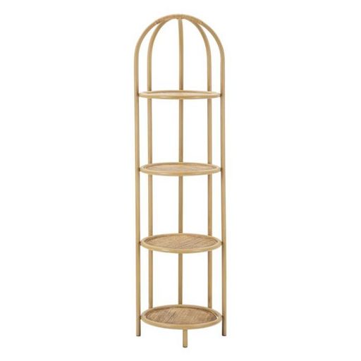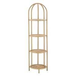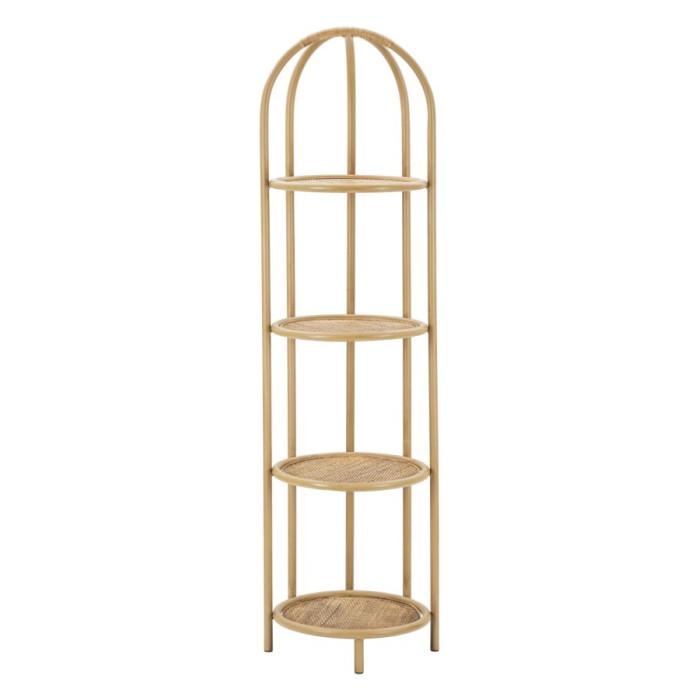 Informations Techniques : Dimensions : L. 40 x l. 38 x H. 150 cm Matières : Métal, Plastique & Rotin Spécificités : Pratique & Tendance Étagère d'angle design Avec 4 niveaux effet tressé Finition en rotin Poids : 8,5 kg Couleur : Naturel