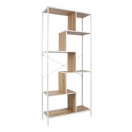 Informations Techniques : Dimensions : L. 80 x l. 30 x H. 180 cm Matières : Structure : Métal Plateaux : Panneaux de particules Spécificités : Pratique & Utile Étagère design A fixer au mur A monter soi-même (30 minutes) Poids : 19,6 kg Couleur : Naturel & Blanc