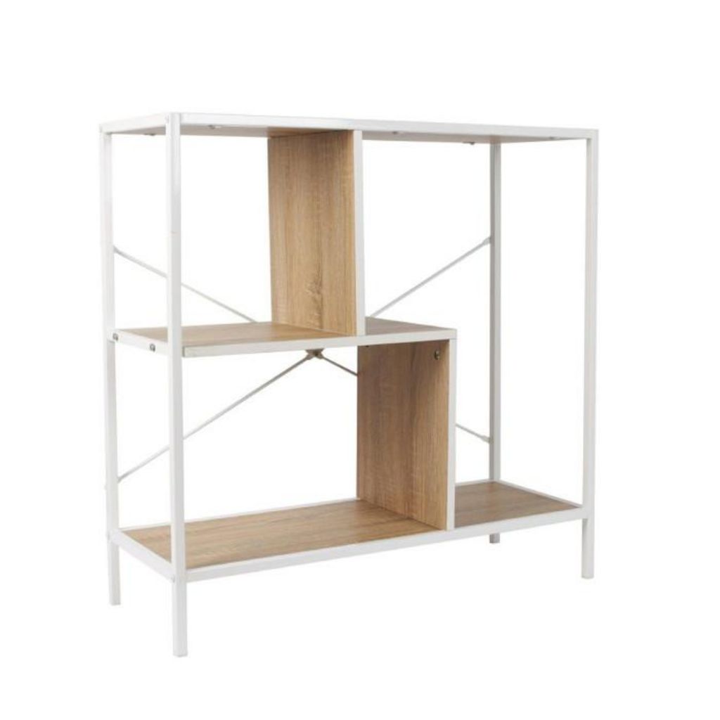 Informations Techniques : Dimensions : L. 80 x l. 30 x H. 79,5 cm Matières : Structure : Métal Plateaux : Panneaux de particules Spécificités : Pratique & Utile Étagère design A fixer au mur A monter soi-même Poids : 10,5 kg Couleur : Naturel & Blanc