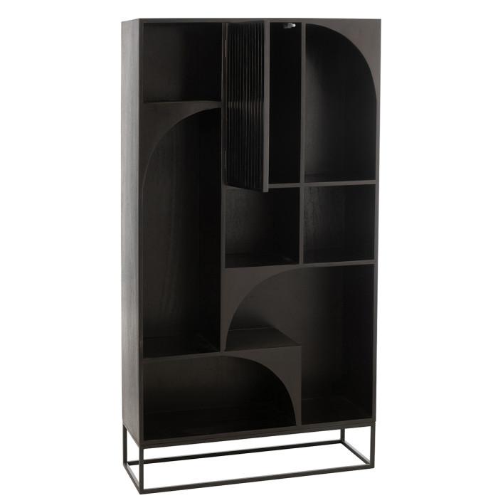 Informations Techniques : Dimensions : L. 90 x l. 33 x H. 168 cm Matières : 70% Bois (Manguier), 20% Métal & 10% MDF Spécificités : Robuste & Utile Étagère design sur pied Avec 7 niches et 1 porte Poids : 38 kg Couleur : Noir