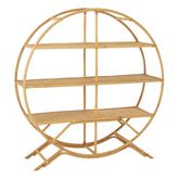 Informations Techniques : Dimensions : L. 150 x l. 40 x H. 150 cm Matières : 70% Rotin & 30% Bois (Contreplaqué) Spécificités : Utile & Tendance Etagère design Sur pied Forme ronde Poids maximum supporté : 50 kg Poids : 12,5 kg Couleur : Naturel