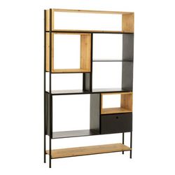 Informations Techniques : Dimensions : L. 110 x l. 30 x H. 185 cm Matières : 60% Métal & 40% Bois (Sapin) Spécificités : Tendance & Originale Étagère bicolore Forme rectangulaire À monter soi-même Poids : 54 kg Couleur : Noir & Naturel