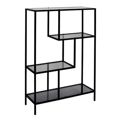 Informations Techniques : Dimensions : L. 80 x l. 30 x H. 113 cm Matières : Structure : Métal Plateaux : Verre Spécificités : Pratique & Déco Étagère design Verre trempé fumé A monter soi-même (20 minutes) Poids : 13 kg Couleur : Noir