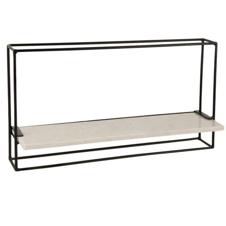 Informations Techniques : Dimensions : L. 15,5 x l. 65 x H. 35 cm Matières : Fer & Marbre Spécificités : Tendance & Déco Étagère Murale Design 1 Plateau Capacité Portante : 15 kg A monter soi-même Poids : 5,6 kg Couleur : Noir & Blanc