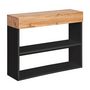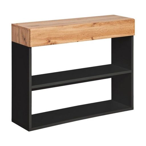 Informations Techniques : Dimensions : L. 100 x l. 30 x H. 80 cm Matières : MDF & Feuilles PVC Spécificités : Pratique & Tendance Console design 1 tiroir & 1 étagère Finition mate Forme rectangulaire Nombre de colis : 1 Poids : 32 kg Couleur : Noir & Naturel