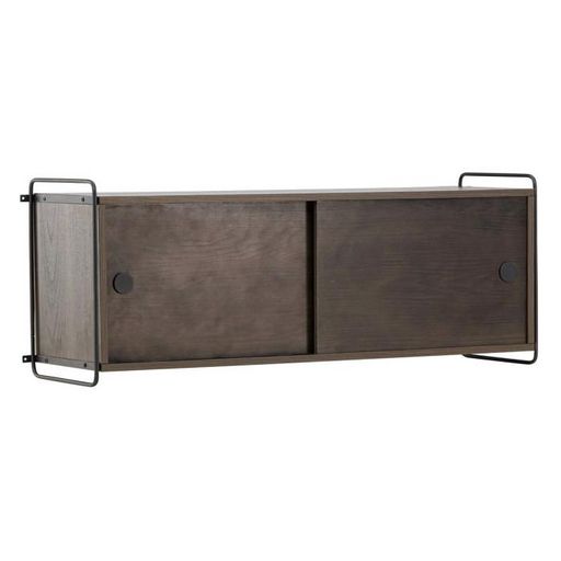 Informations Techniques : Dimensions : L. 122 x l. 35 x H. 48 cm Matières : MDF & Acier Spécificités : Esthétique & Fonctionnelle Étagère murale rectangulaire 2 portes coulissantes Étagère intérieure Nombre de colis : 1 Poids max supporté : 30 kg Poids : 23,2 kg Couleur : Marron Foncé