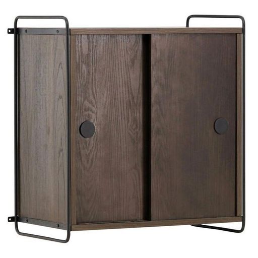Informations Techniques : Dimensions : L. 60 x l. 35 x H. 68 cm Matières : MDF & Acier Spécificités : Esthétique & Fonctionnelle Étagère murale rectangulaire 2 portes coulissantes Étagère intérieure Nombre de colis : 1 Poids max supporté : 20 kg Poids : 18 kg Couleur : Marron Foncé